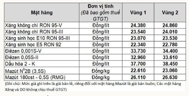 - Dầu mazut không vượt quá 22.613 đồng/kg