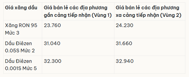 • Xăng RON95-III có giá không cao hơn 23.761 đồng/lít, tăng 218 đồng/lít.