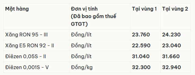- Xăng RON95-III: không cao hơn 23.761 đồng/lít, tăng 218 đồng/lít