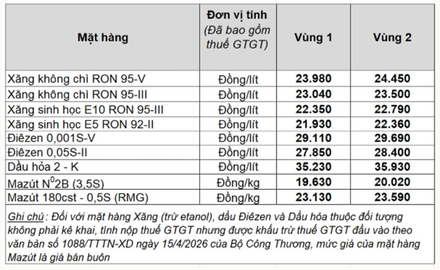 Chiều cùng ngày, liên Bộ Bộ Công Thương và Bộ Tài chính đã công bố mức giá bán lẻ xăng dầu mới, chính thức áp dụng từ 16h.