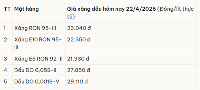 Bảng giá xăng dầu hôm nay 22/4/2026 tại Thalexim