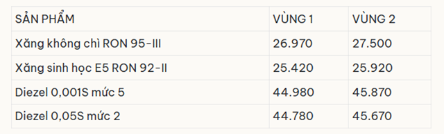 Cụ thể, xăng E5 RON92 tăng 1.565 đồng/lít, lên tối đa 25.428 đồng/lít; xăng RON95 tăng 1.817 đồng/lít, lên 26.976 đồng/lít. Dầu diesel tăng mạnh 3.961 đồng/lít, lên 44.788 đồng/lít.