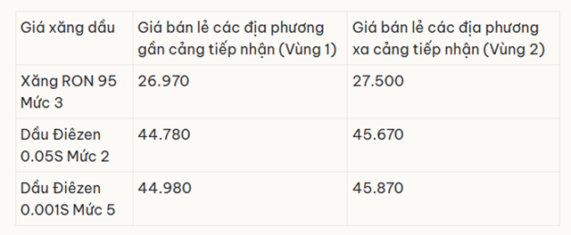 Các mặt hàng khác như dầu mazut tăng 1.262 đồng/lít, trong khi dầu hỏa giữ nguyên giá. Đáng chú ý, cơ quan điều hành không trích Quỹ bình ổn, đồng thời chi từ nguồn tạm ứng ngân sách 5.000 đồng/lít đối với dầu diesel nhằm giảm áp lực giá.