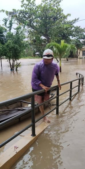 Bố Yến Nhi dùng thuyền đưa người nhà và một số người lân cận đi di tán đến nơi an toàn