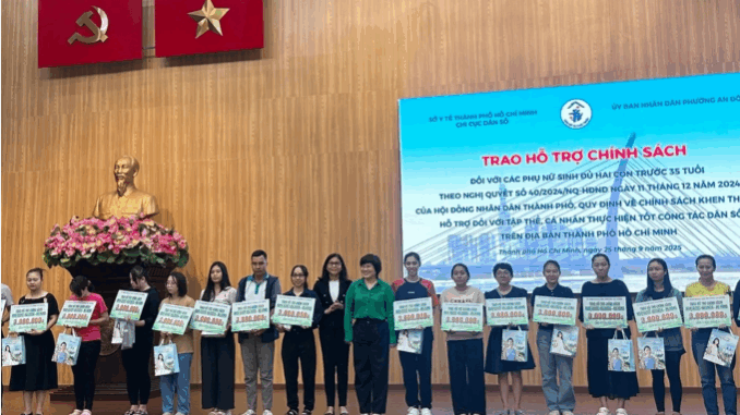 Cụ thể, năm 2024, HĐND TPHCM ban hành Nghị quyết số 40/2024/NĐ-HĐND, quyết định hỗ trợ 3 triệu đồng cho phụ nữ sinh đủ hai con trước 35 tuổi. Nghị quyết này áp dụng từ ngày 21/12/2024 đến 31/8/2025.